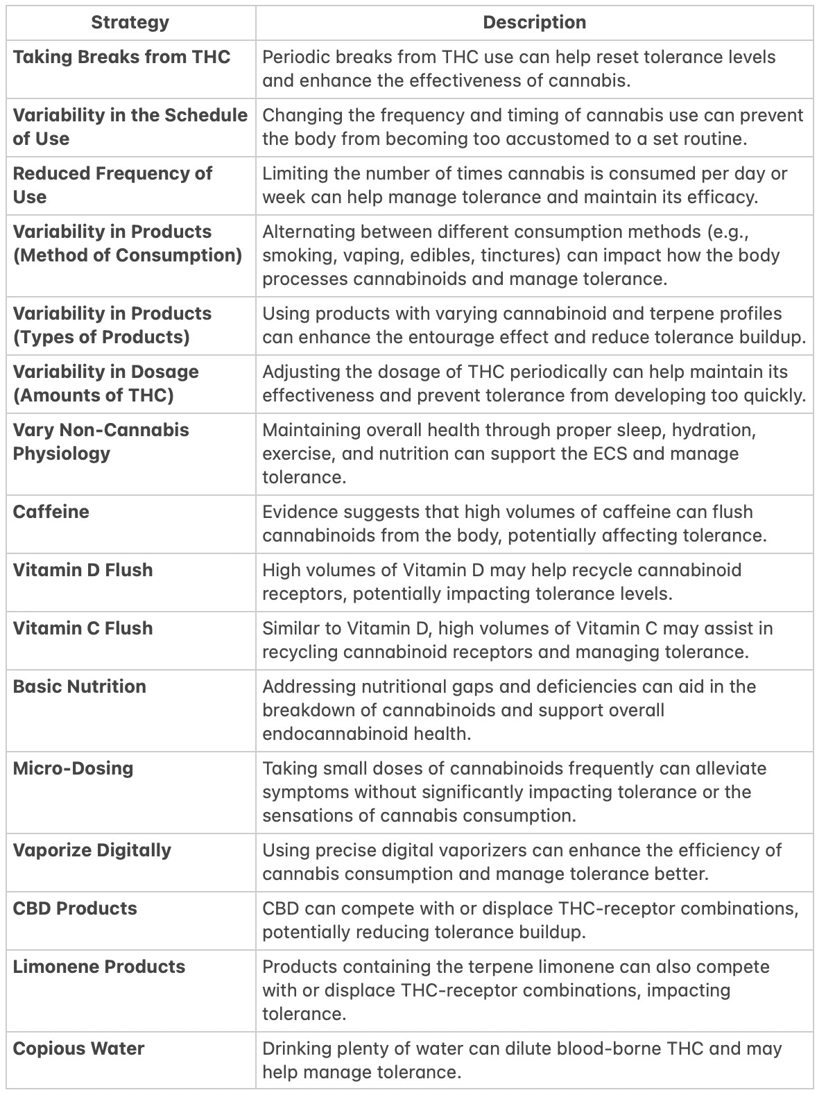 Strategies to Mitigate Cannabis Tolerance